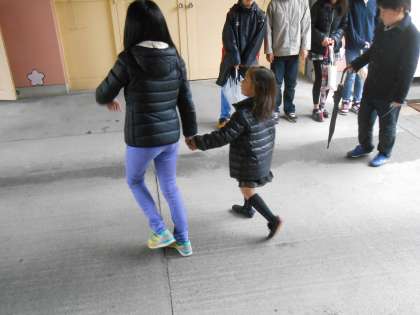 その後の入学式では新1年生が教室へ行くお手伝いをしました。