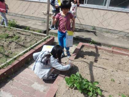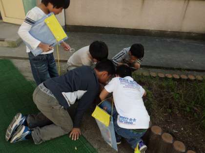 ダンゴ虫やホトケノザを発見しては,興味津々な様子で,じっくり観察していました。