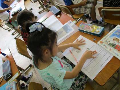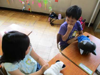 自分のたからものについて,となりの席のお友達に紹介していました。