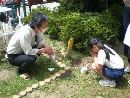 飼育委員の子ども達が骨を埋めてお参りしました。