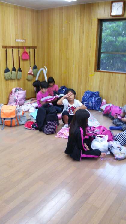 朝の集いでは,テレビ会議をした学校のお友達とまた楽しく交流しています。