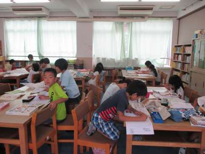 夏休み前の国語の学習では,調べたいテーマを決めて,図書室へ行き,事典や図鑑などを使って調べました。