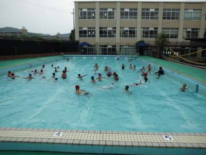 プール学習には,連日たくさんの人が参加しています。