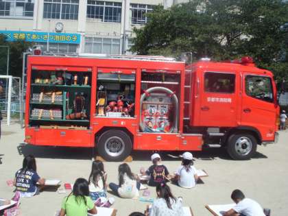 2年 避難訓練→図工 しょうぼうしゃの絵
