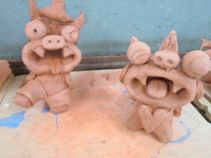 夏休みが明けてから,6年は図工でシーサーを作っています。