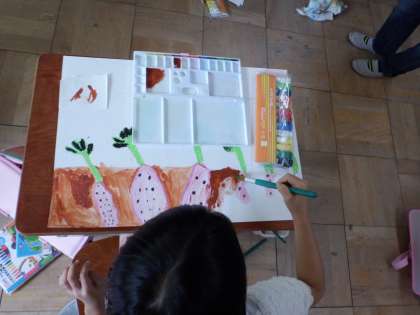 コンテやパスを使うところと,絵の具を使うところを考えながら