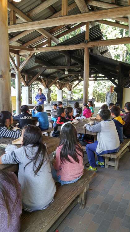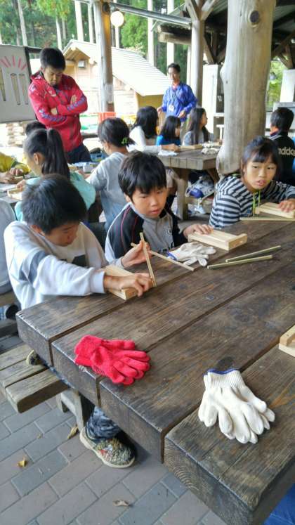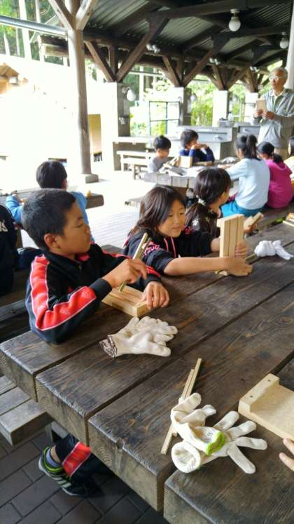野外炊事の時は,自分で作るこのオリジナルの竹ばしを使用します。