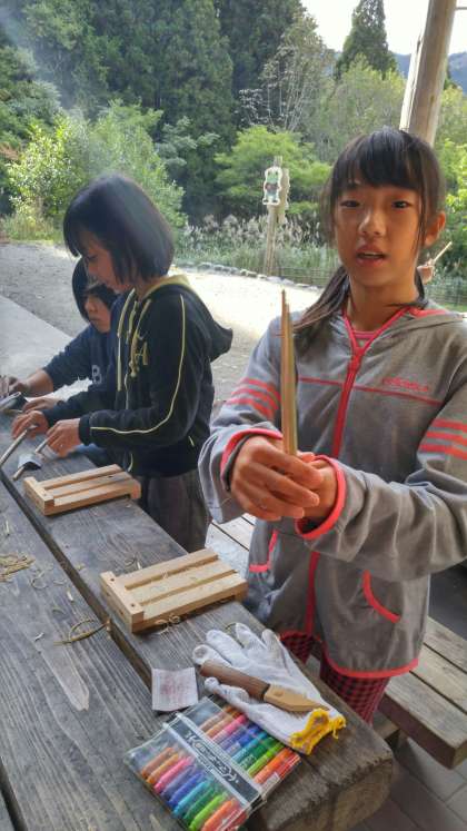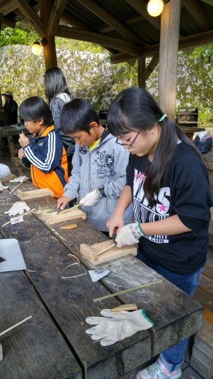 みんな頑張って竹ばし作りに取り組んでいます。