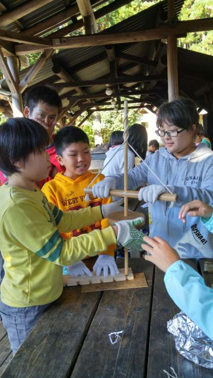竹ばし作りの後は,火おこし体験です。