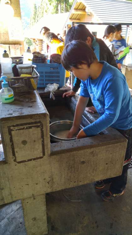 カレーの材料を切ったり,お米を洗ったりしています。