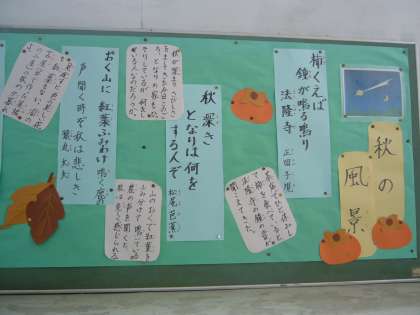 掲示板にも。運動場の木々も,色づいてきました。