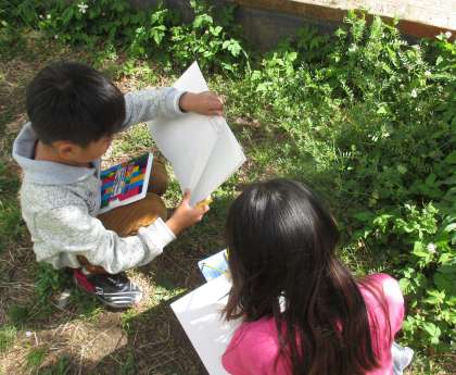 理科の「季節の生き物(春)」という学習で,校庭の動物や植物の観察をしました。