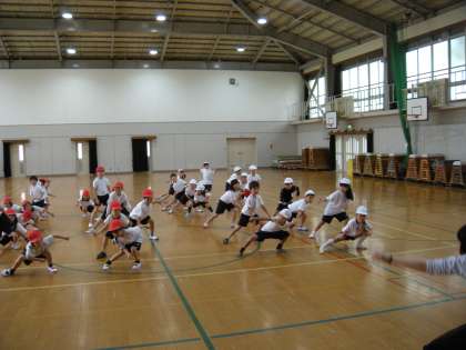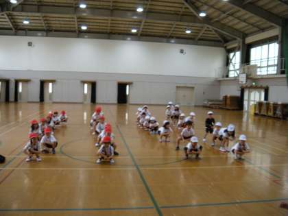 体育館に並んで出発!!大分上手に並べるようになってきました。