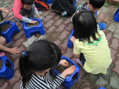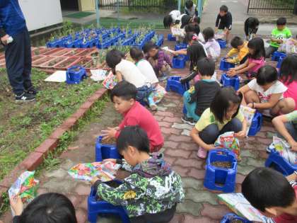 土を入れて〜(こぼさないようにゆっくり〜)