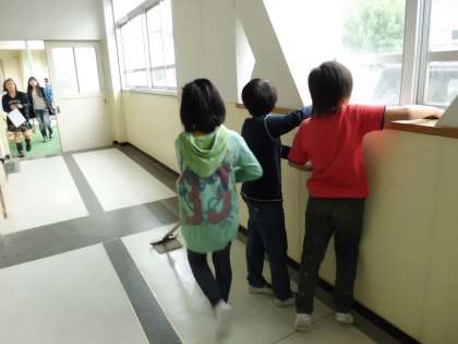 保健室前や玄関,わくわくランドは4年生が掃除をしてくれ