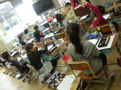 習字セットの中から道具ひとつひとつを確認しながら、道具の名前や使い方など学習の進め方・準備を中心に学習しました。