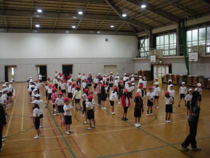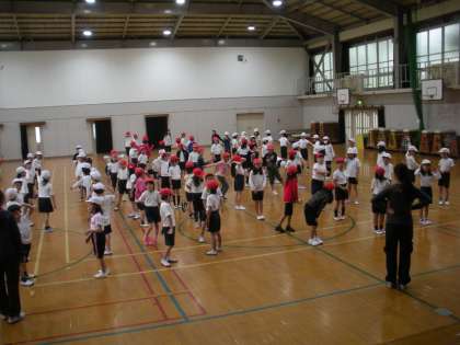 4年生と一緒にのペア競技の練習が始まっています。