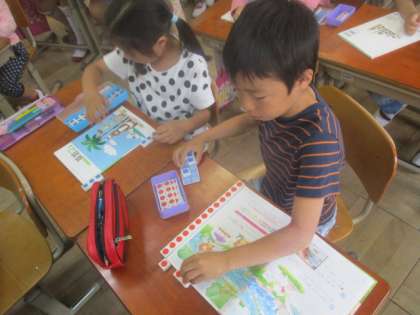今日は数図ブロックやえんぴつを使って,いろいろなものの長さを計りました。