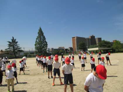 1年 運動会の練習(6年生と一緒に)
