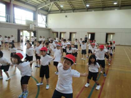今日は 6年生と一緒に大玉ころころの練習とロックソーランの練習をしました。