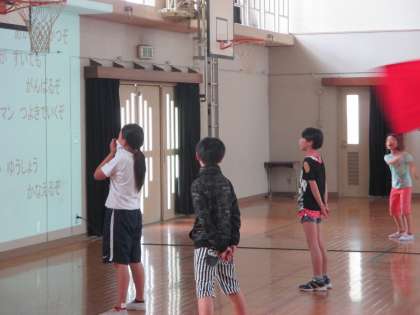 6年生の大きな声が体育館に響いています。