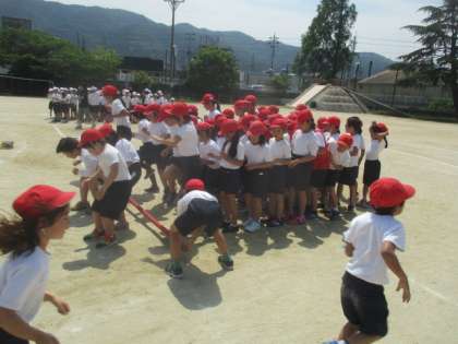 今日は,4年生との競技「台風の目」の練習をしました。