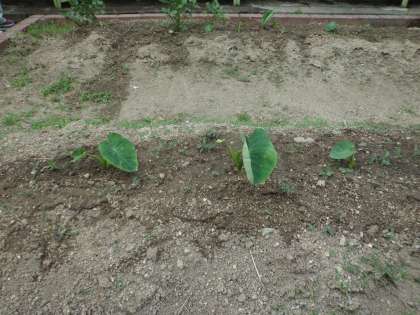 さといもが次々と発芽しています。2〜3個位が発芽したらいいかなと思っていましたが,現在11個の発芽を確認しています。嬉しい誤算です。しかし,こうなるといもの間隔が狭かったかもしれません。今後様子を見ていきたいと思います。