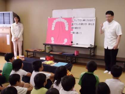 まずは,どうしてむし歯になるのかを人形を使って楽しく教えてくださりました。