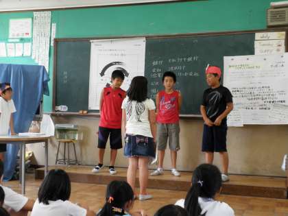 5年生は9月8日のスチューデントシティ学習に向けて,総合学習の時間に,学年合同で学習を始めています。