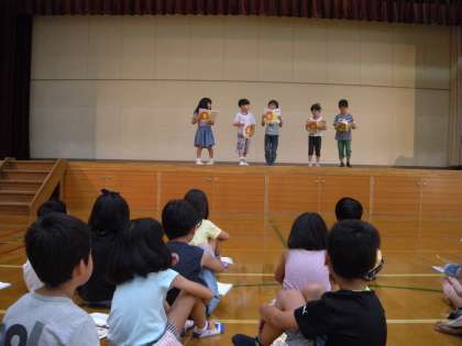 体育館で発表するのに,みんな大きな声で頑張っていました。