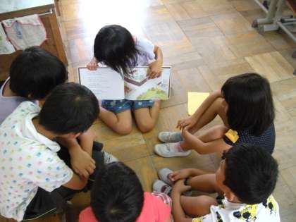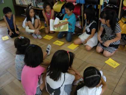 今日は,2年生が絵本クイズを出しに1年生の教室に来てくれたので,