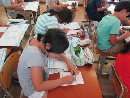 丁寧に字を書いて,絵を添えて投函です。