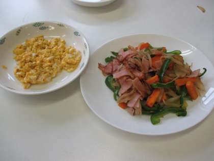 野菜炒めとスクランブルエッグを作りました。