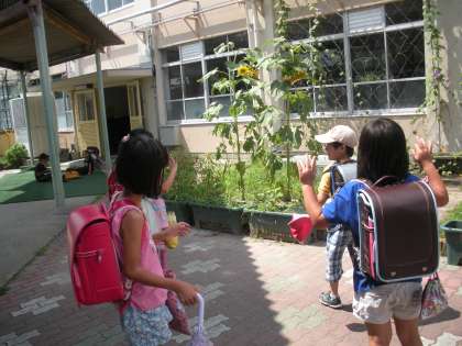 大好きな給食にも大きくなったヒマワリにも「ありがとう」を伝えてみんなで仲良く下校しました。