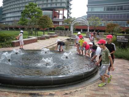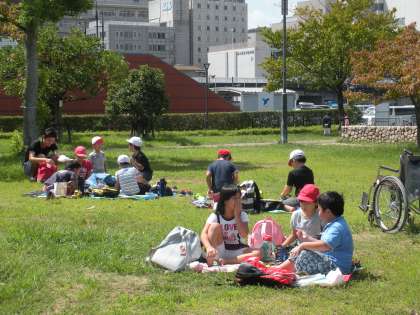 八ツ橋本舗の見学後,浜大津まで電車に乗り,琵琶湖の見える「なぎさ公園」でお弁当を食べました。