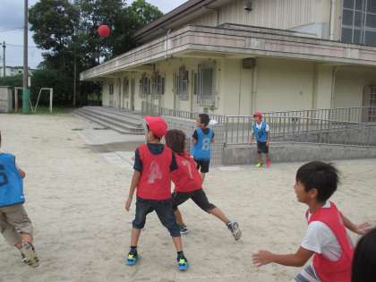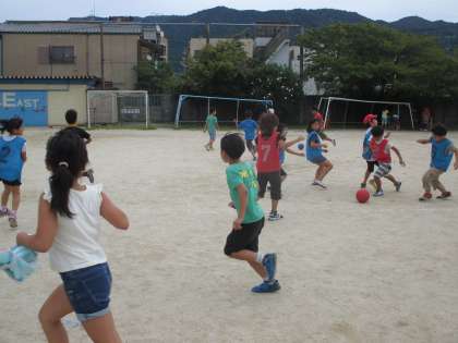 2チームに分かれて一生懸命ボールを追いかけます。