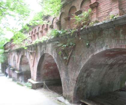 子どもたちは,昔のままの姿で残っている水路閣に感心しているようでした。