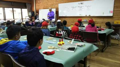 山の家での最後の活動は,クラフトで「ウッド写真立て」づくりです。