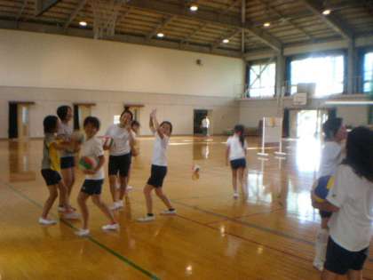 暑くてむしむしする体育館の中ですが,元気に声を出して頑張っています。