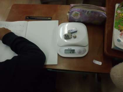 電子てんびんを使って,身の回りの物の重さをしらべました。