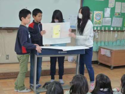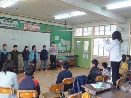 司会進行はお楽しみ会係の子どもが担当し,各グループが合唱,ペープサート劇,お笑い,ダンスの