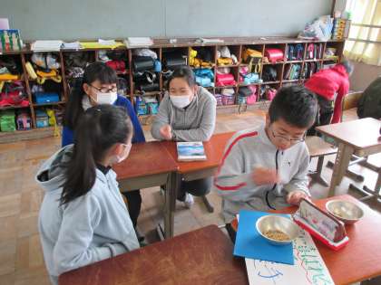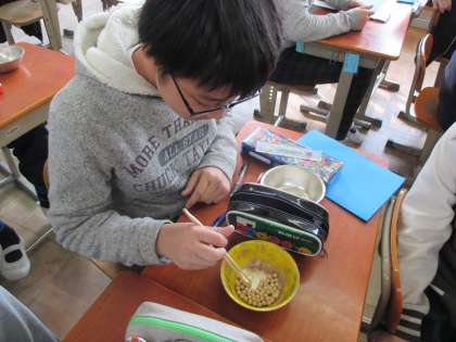 給食週間に向け,豆つまみ大会の練習をしました。