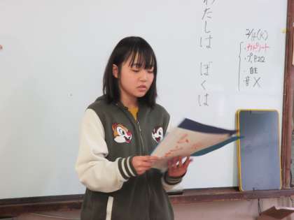「今 私は ぼくは」の単元で,将来の夢や中学校の目標を話しました。