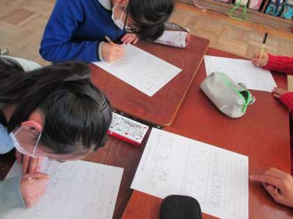 ワークシートに振り返りを書いています。