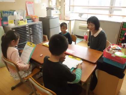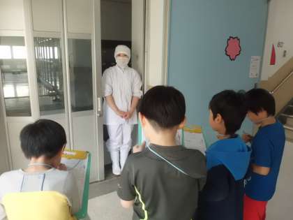 1年生と一緒に校内探検をするための準備として、それぞれの部屋へインタビューに伺いました。職員室や給食室へインタビューにいく子どもたちの表情は、緊張のせいもあるからか、いつも以上に真剣でした。