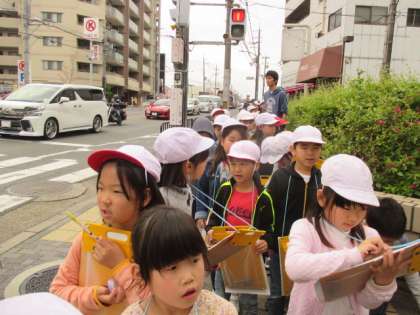など方位じしんと地図を見比べながら校区にどんなものがあるのか調べることができました。