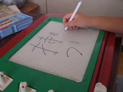 また,正しい書き順で文字を書く練習なども,楽しい教材を使って学習を進めています。
