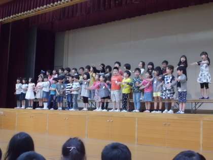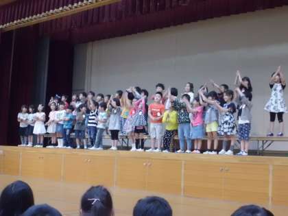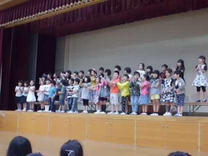 1年生を迎える会で「風と光と子どもたち」を歌っていました。