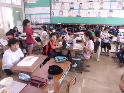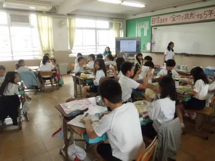 5年生は給食を食べていました。