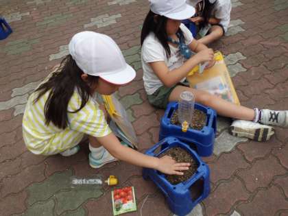 「大事な命だから・・・」と,優しくそっと種を植えている姿がステキでした。